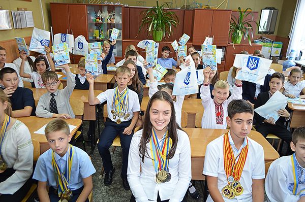 Після цього школярі з вказаних класів похизувались своїми спортивними доробками та здобутками, медалями й отримали з рук члена Виконкому обласного осередку НОК Діни Міфтахутдинової набори олімпійських подарунків до Олімпійського уроку від голови відділення Національного олімпійського комітету України в Дніпропетровській області Андрія Павелка, та набор спортивного інвентаря для зайнять фізкультурою у навчальному закладі.