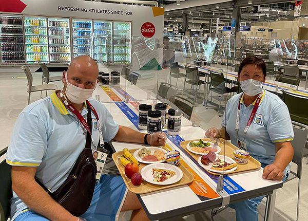 У перший вечір прибуття спортсмени завітали до їдальні, яка працює цілодобово й пропонує широкий спектр страв різноманітних кухонь світу.