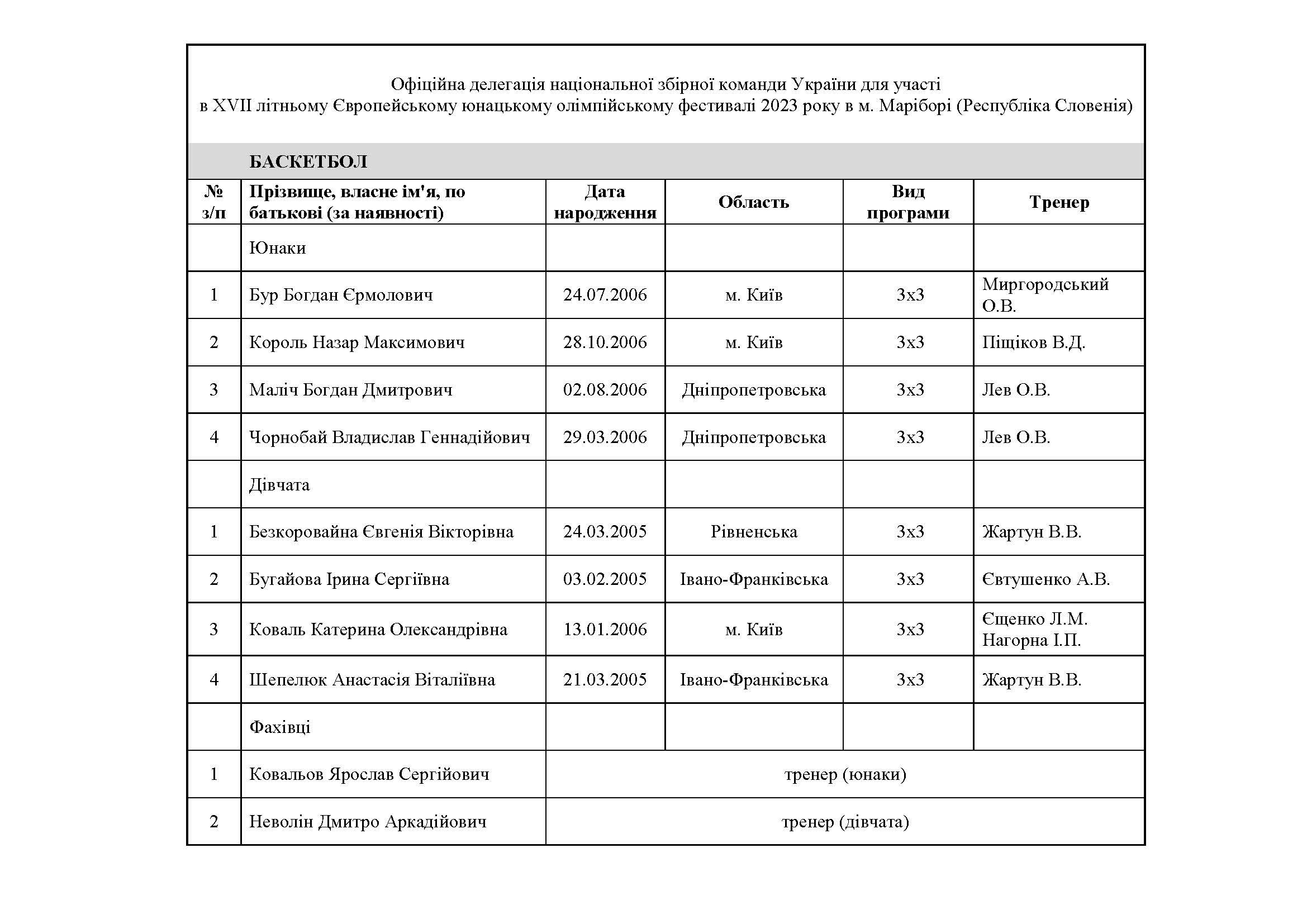 Сьогодні Виконавчий комітет Національного олімпійського комітету України затвердив поіменний склад учасників офіційної делегації національної збірної команди України для участі в XVII літньому Європейському юнацькому олімпійському фестивалі.