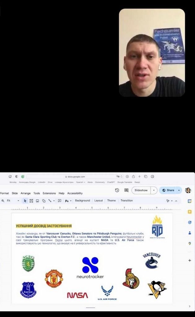 Член Комісії, експерт проєкту Дмитро Кірпулянський детальніше розповів про методологію та технічне забезпечення, що використовуватимуться в рамках реалізації проєкту. Зокрема він зазначив, що запропоноване технічне рішення (використання спеціальних окулярів – Neurotracker) уже широко застосувується серед відомих організацій різних секторів. Хокейні команди, як-от Vancouver Canucks, Ottawa Senators та Pittsburgh Penguins; футбольні клуби, такі як Santa Clara Sporting Club та Everton F.C.; а також знаменитий футбольний клуб Manchester United, інтегрували Neurotracker у свої тренувальні програми. Окрім цього, агенції на кшталт NASA та U.S. Air Force також використовують цю технологію, що вказує на її універсальність та ефективність у підвищенні когнітивних здібностей, важливих для досягнення високих результатів у таких різних сферах, як спорт, аерокосмічна промисловість та оборона.