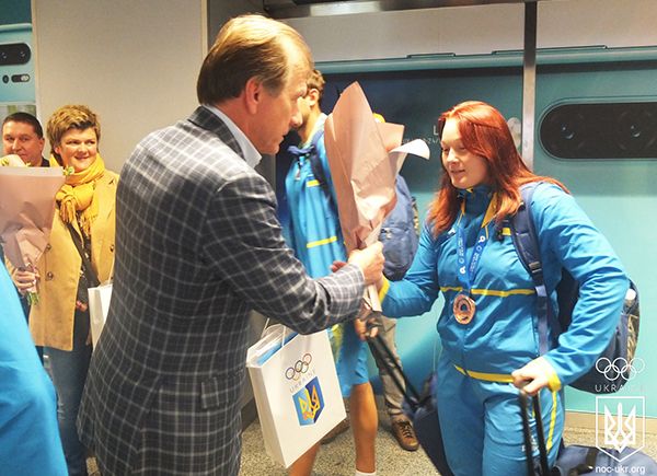 По поверненню на рідну землю у міжнародному аеропорту «Бориспіль» олімпійців тепло і радісно зустрічали представники Національного олімпійського комітету України, рідні та близькі, журналісти.