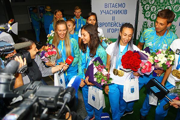 Команда новоспечених золотих медалістів ІІ Європейських ігор, що лише вчора підкорювала спортивний Мінськ, сьогодні приземлилася на рідній землі в аеропорту «Бориспіль».